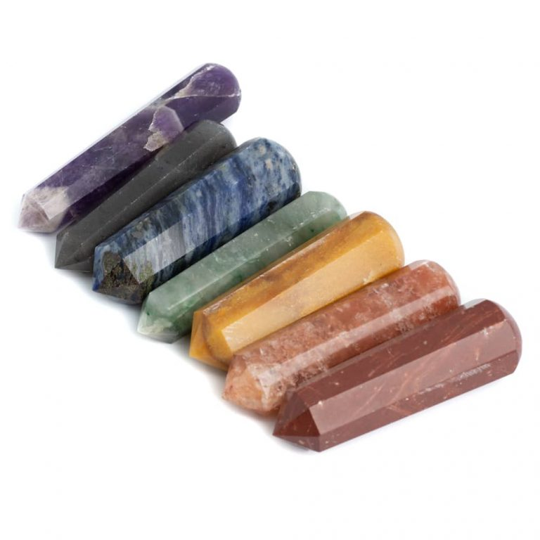 Chakra massage griffel set van 7 stuks. De griffels zijn ongeveer 80-100 mm groot.