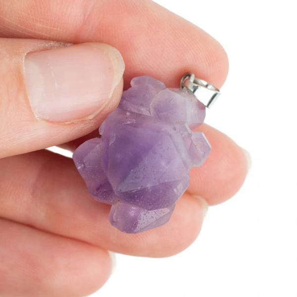 Een edelsteen hanger van een brokje amethist.