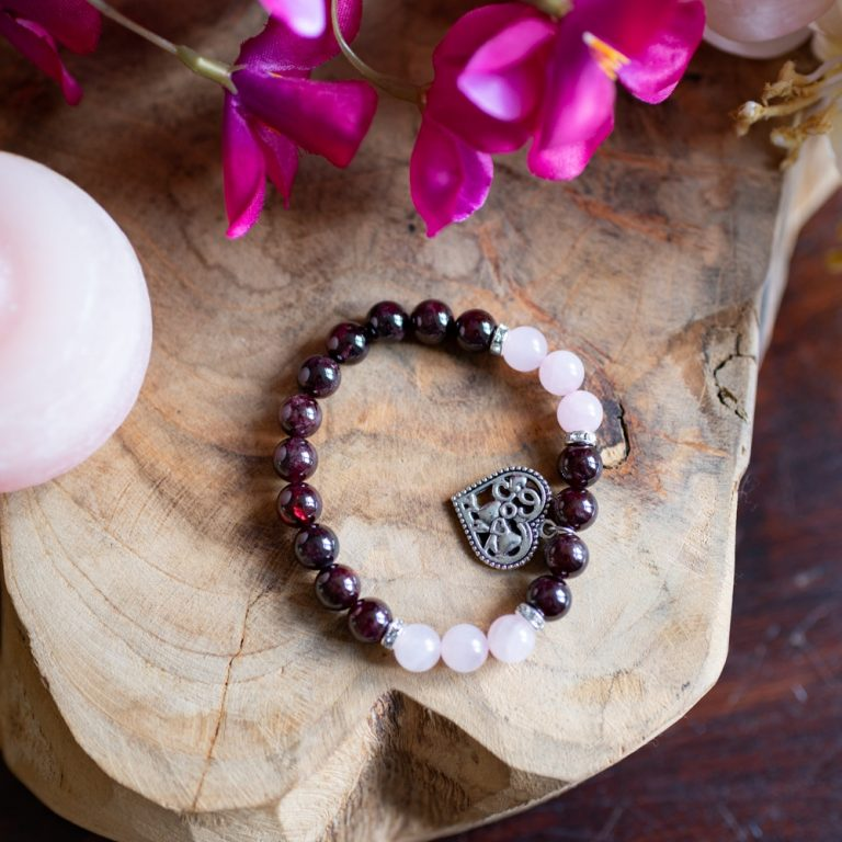 Edelsteen Armband Granaat/ Roze Kwarts met Hartje